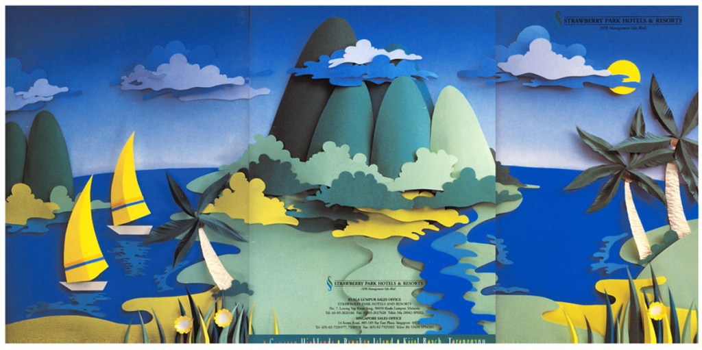 Bespoke paper sculpture illustrations commissioned by Strawberry Park Resort Group for the hotel group promotional material. Designed by Zarina Holmes for Ismail Associates Advertising, Kuala Lumpur.