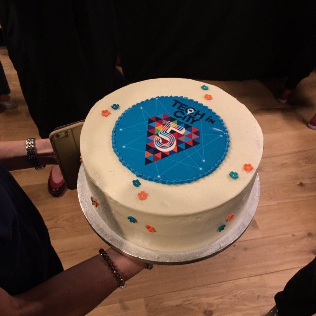 For Tech City UK’s fifth anniversary, GLUE Studio was commissioned to design the brand identity of the launch event, which happily included a cake that featured a diamond-inspired logo.