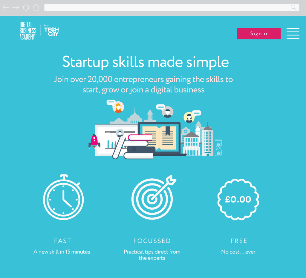 Studio GLUE was commissioned by Tech Nation to design the holding page of Digital Business Academy (DBA) and its social media campaigns.