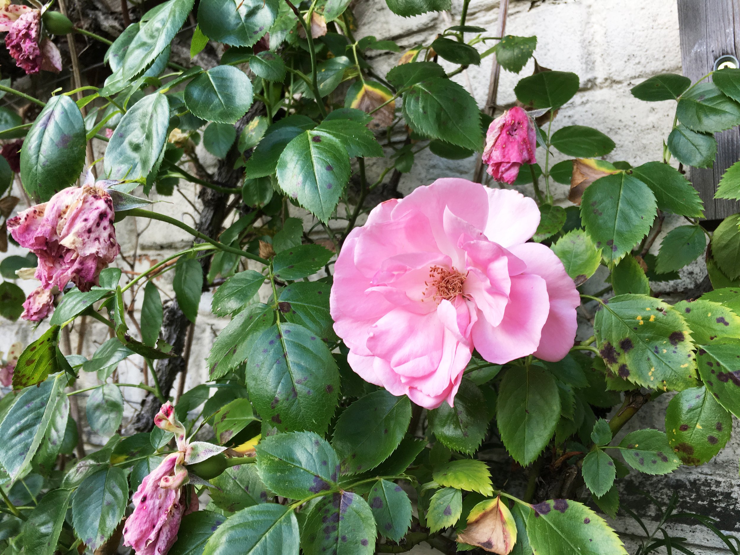 We caught the Fulham Rose just at the right moment, as it began to shed its petals. This is how we’d like to remember it.