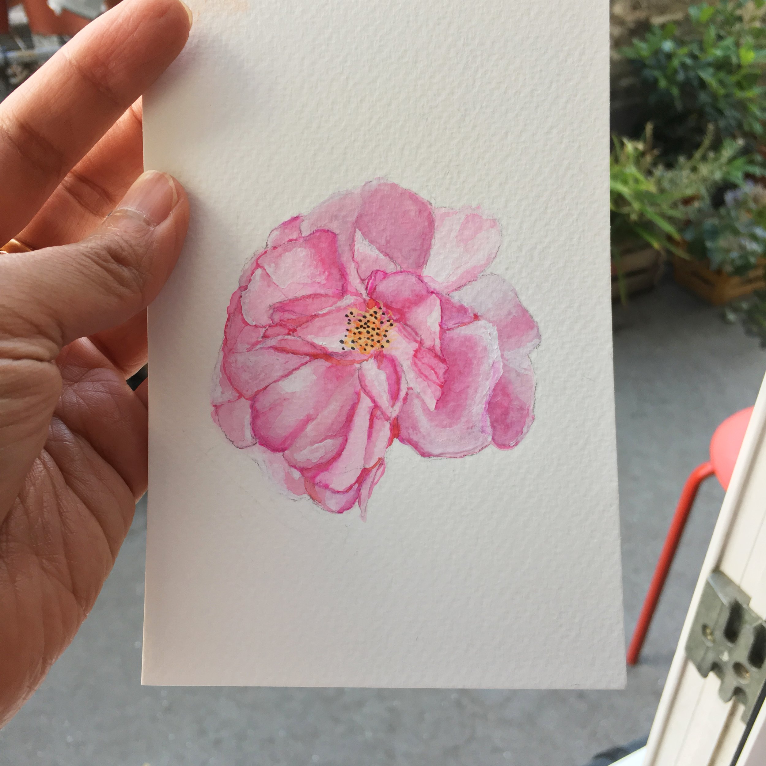 Roses look good at any stages, from a little bud to a full bloom. However, we like to paint them when the petals are fully opened. We feel that the texture of the petals, the shading and the ageing colour give the roses a distinctive personality. But this also means that the roses are mature, perhaps over three weeks old. At this stage, they start to shed the petals. So we haven’t got much time to draw roses at their peak.