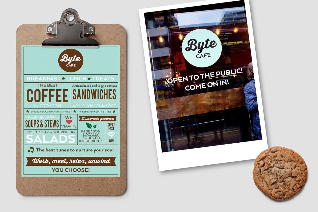 Byte Cafe identity for TMRW Croydon
