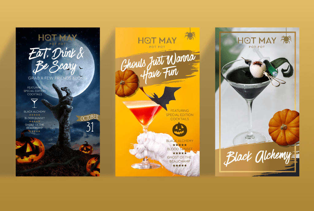 Signature Halloween cocktails campaign for Hot May Pot Pot Knightsbridge